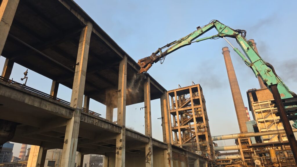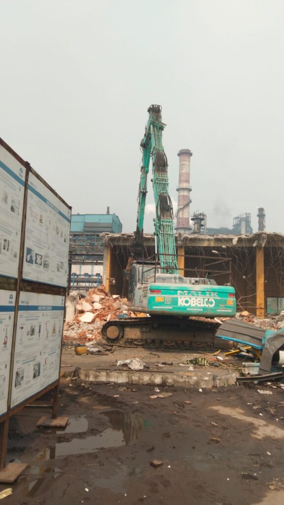 The project involved the removal of multiple industrial plant sections, heavy structural steel frameworks, and high-rise plant buildings located inside the steel plant premises. Due to the scale and complexity of the structures, the dismantling work required careful planning, experienced manpower, and controlled dismantling methods.